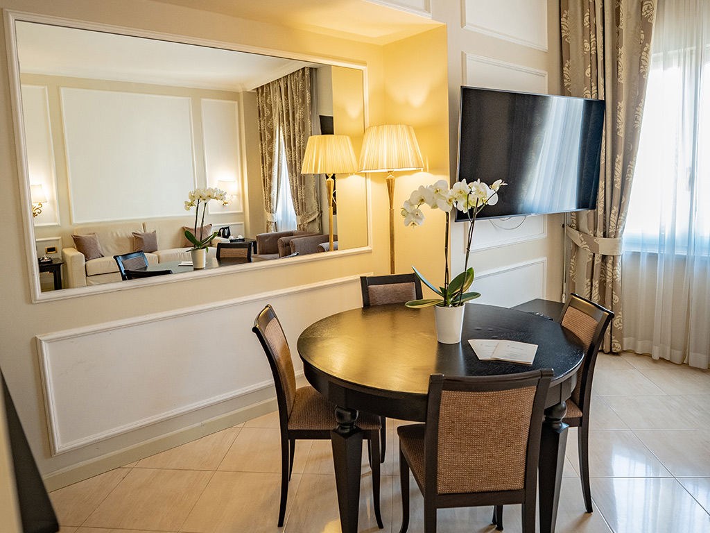 Il lusso, l’eleganza, la comodità con la vista sulla Baia del Silenzio dalla porta finestra della camera da letto, dotata di doppi servizi, letto matrimoniale king size, vasca idromassaggio, accappatoi, salotto, SKY tv e cabina armadio.