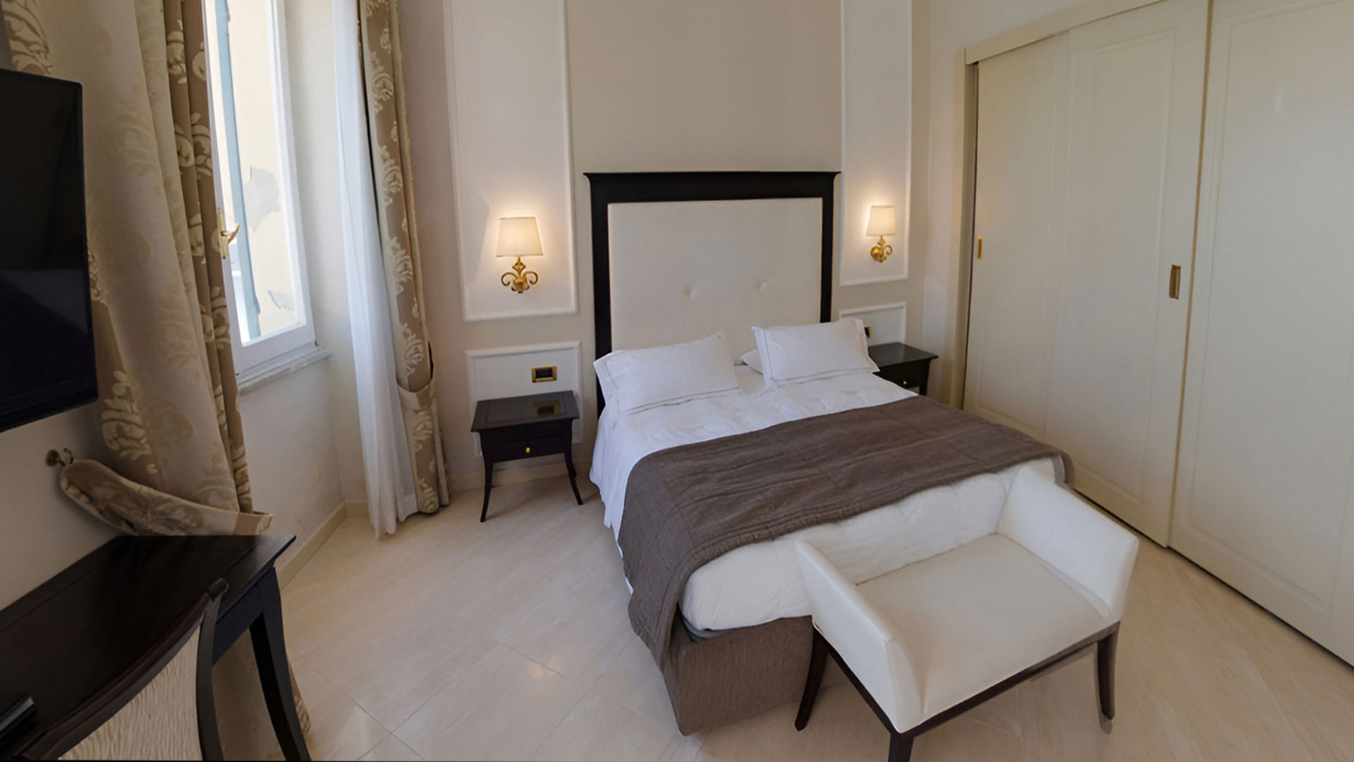 Comfortable and cozy, located on the mezzanine floor on a quiet street in the historic center, it is composed of a large living room, a double bedroom with: king size double bed, a large walk-in closet and a double bedroom with a third bed (sofa bed); a bathroom with a large shower with a Turkish bath and chromotherapy.
